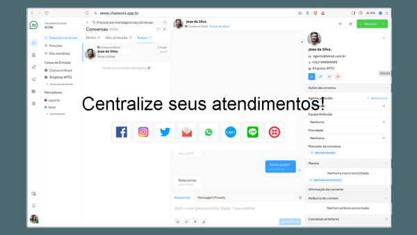 Centralize em uma única plataforma atendimentos de vários números de Whatzapp e crie seus próprios Bots de maneira simplificada. Integre também SMS e inclua Chats de atendimento no seu site e Telegram.